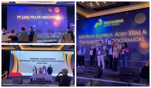 Awal tahun selalu menjadi penyemangat baru bagi PT Jaya Trade Indonesia. PT Jaya Trade Indonesia kembali menoreh prestasi dari PT Pertamina Patra Niaga sebagai Best Volume Aspal 2022 atas kinerja pencapaian target agen BBM di tahun 2022.