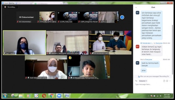 Dalam rangka kegiatan Virtual Trip yang diselenggarakan SMA Pembangunan Jaya 2 Sidoarjo dengan tema “Global Trade and Climate Change Impacts” PT Sarana Sampit Mentaya Utama Cabang Pulang Pisau di undang menjadi salah satu narasumber.