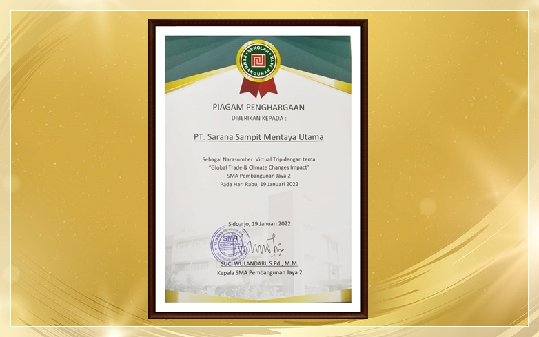 Dalam rangka kegiatan Virtual Trip yang diselenggarakan SMA Pembangunan Jaya 2 Sidoarjo dengan tema “Global Trade and Climate Change Impacts” PT Sarana Sampit Mentaya Utama Cabang Pulang Pisau di undang menjadi salah satu narasumber.